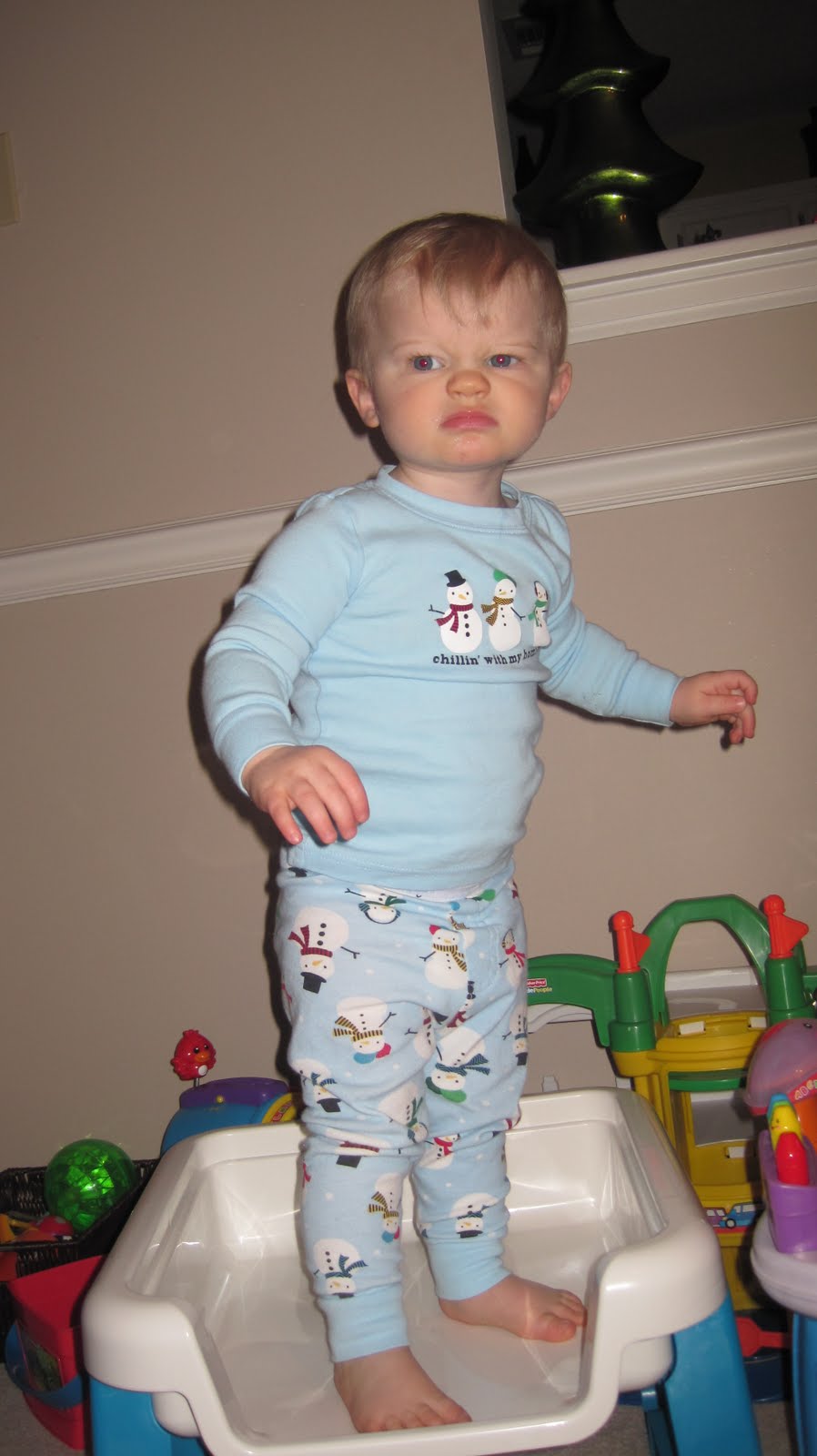 He is pretty sturdy on his feet - he is kind of running now too...in the house at least. And he does get upset. Like we went to the wrong gym for a free play