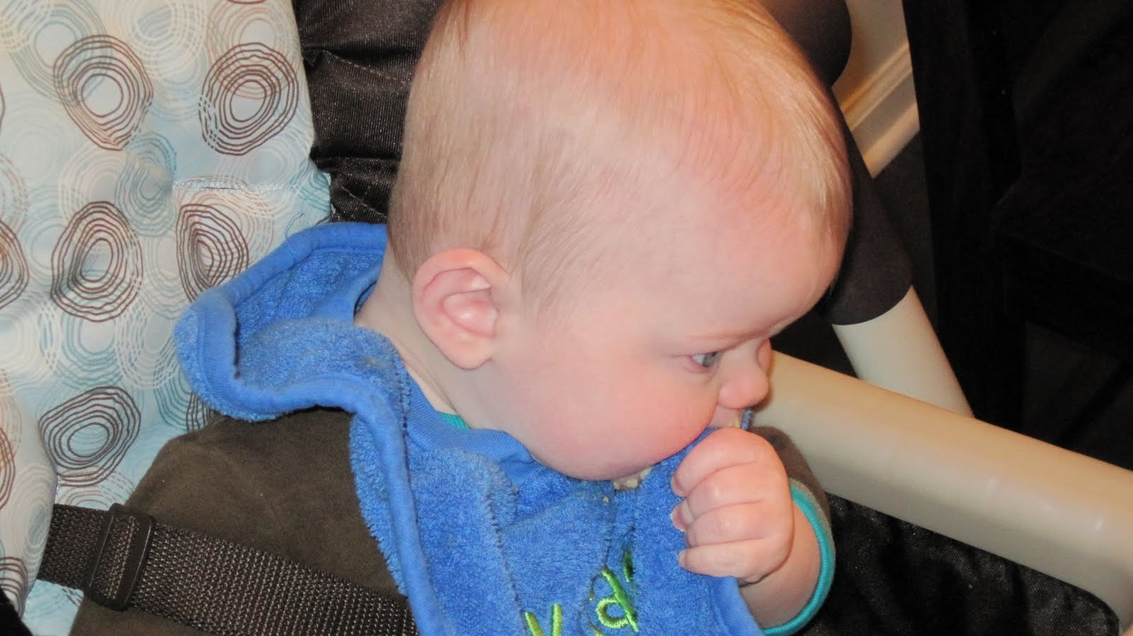 And for your Logan fill - here are some recent pics - YES - that is a wubbie, we all know he hates pacis or soothies anything like that. But he is now chewing on them I think because his gums are sore from teething. At least he can use it now!