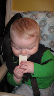 Logan trying Mum Mums for the first time - his first solid food! He loves them - of course they taste like nothing and dissolve in your mouth. But - he is a fan :)