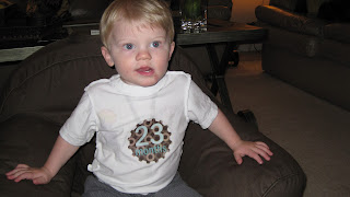 Logan on his big day - Grammy and Gigi did a good job of keeping up with him following him around so I could decorate the room and talk to guests :)